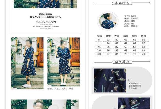 4.突出商品尺码介绍,商品材质描述,模特试穿体验等。